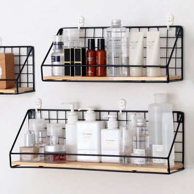 Homorahub Creative Wall Shelf Storage Basket Free Perforated Hanger
