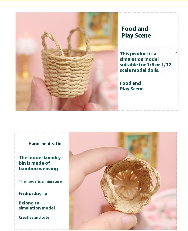 Homorahub Miniature Candy Toy Woven Basket Storage Basket Mini Model